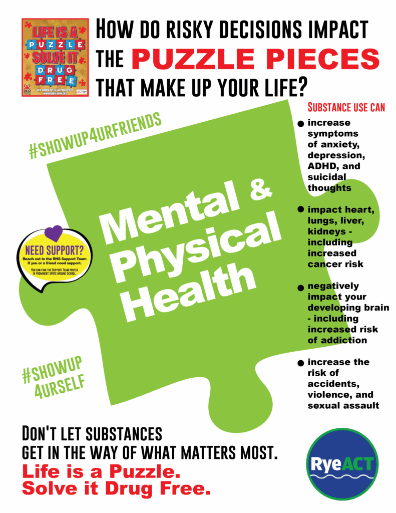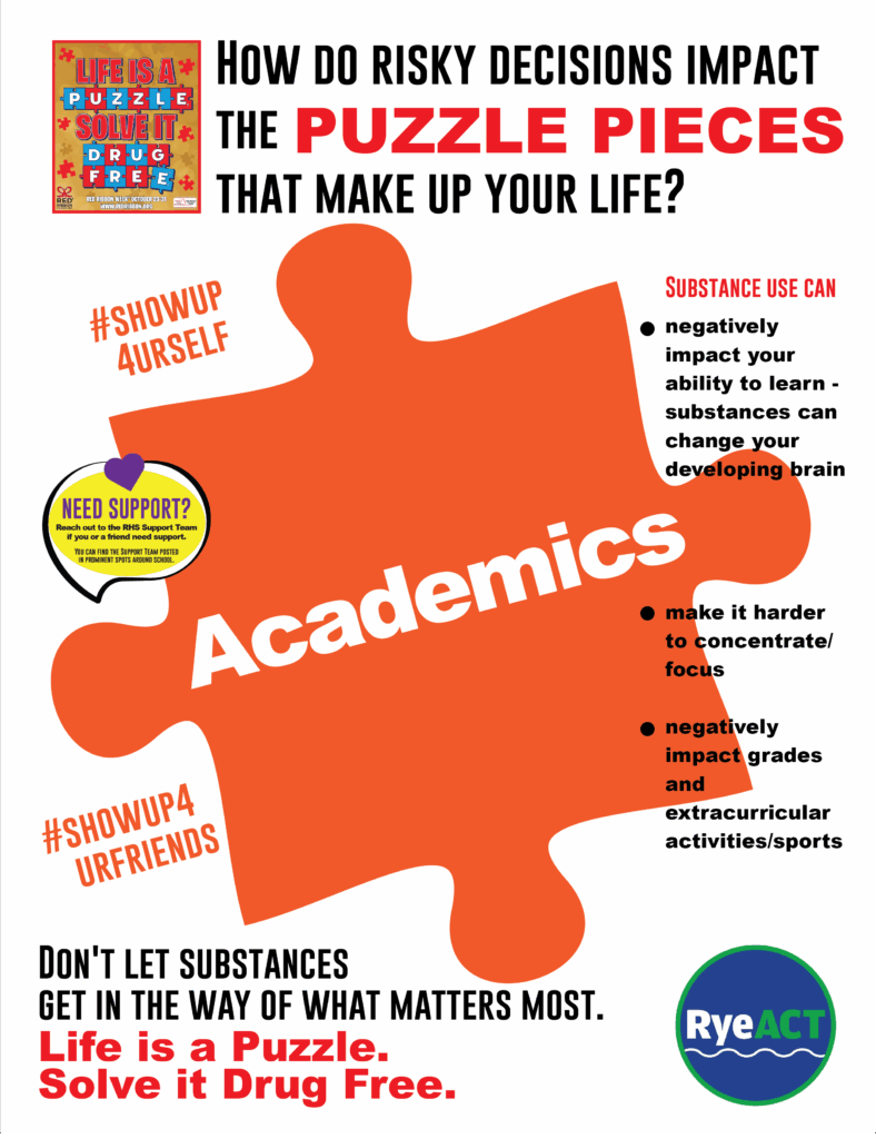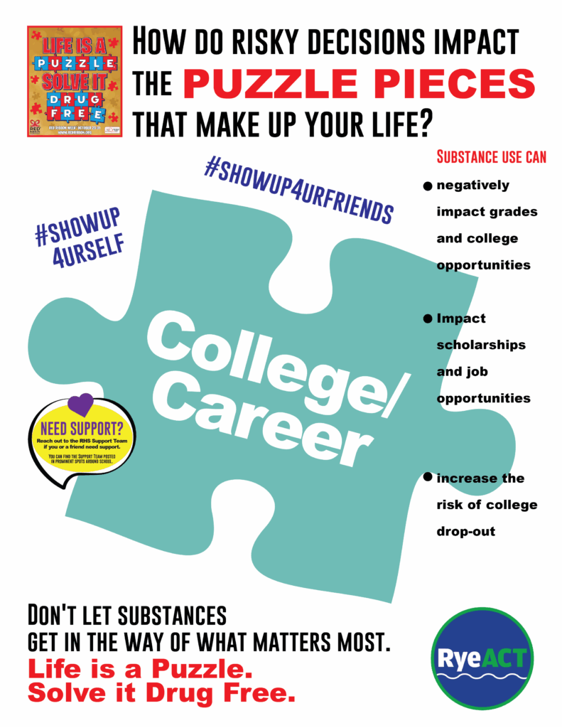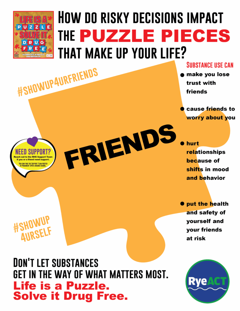 In keeping with best practice, and as required by our federal Drug Free Communities (DFC) grant funding, RyeACT routinely collects both quantitative and qualitative data to inform our prevention work in the community, and to evaluate the impact of our prevention strategies. These data sources include formal and informal surveys, key leader reporting (schools, law enforcement, hospital partners), and anecdotal student and parent reporting, among others.